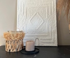 Hoe leuk is het om een uniek kunstwerk in huis te hebben! Uniek? Ja echt, want van elk kunstwerk is er maar 1 beschikbaar. Je kunt hem ergens neerhangen of neerzetten om een sfeervol plaatje te creëren.